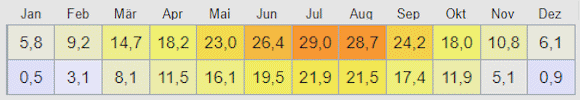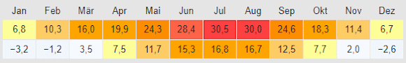 ermittelt auf der Basis von langjährigen Messungen. Die realen Temperaturen